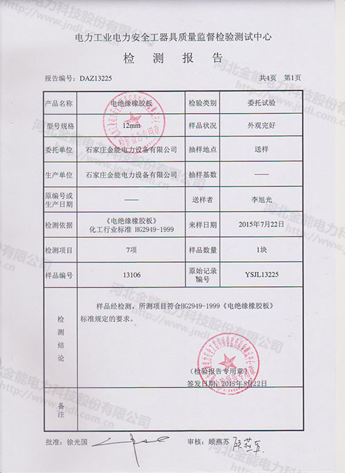 12mm絕緣膠墊檢測(cè)報(bào)告